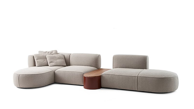 在多個新推出的產品中,藝術總監本人設計的“bowy-sofa”無疑是最出彩的一款,這款沙發展現出高品質的剪裁技術,同時利用沙發模塊的形式展開實驗,使其具有通用型設計的特性。其形態極具特色,渾圓的扶手直接與靠背相連,靠背則在座位組件之外浮現出來。圓形、半圓形以及矩形形態不斷交替轉換,創造出體量與圖形輪廓的游戲。