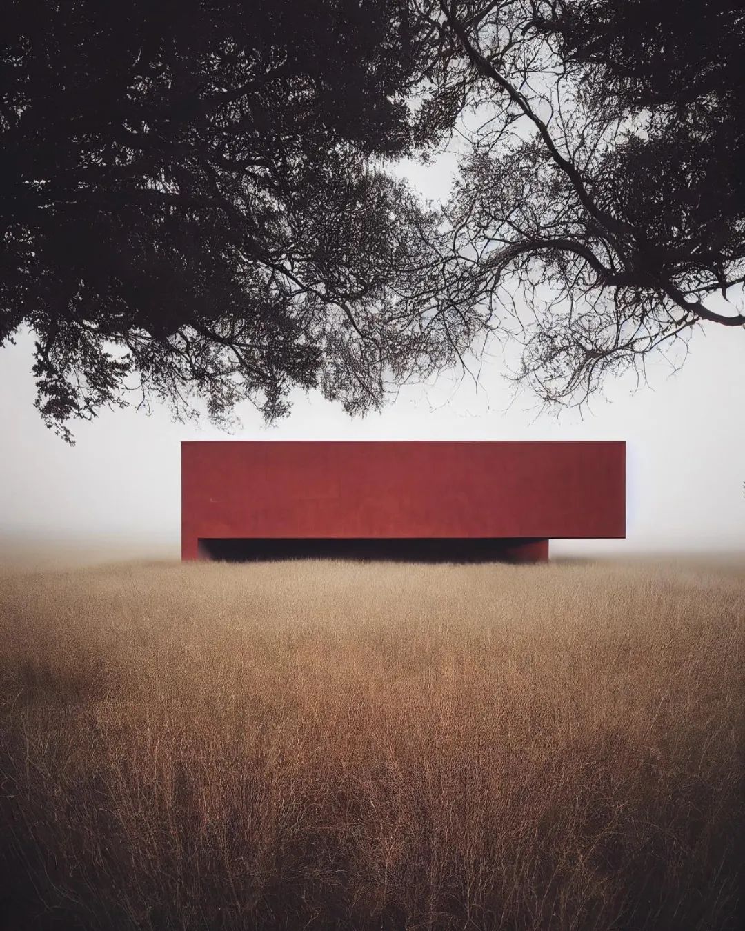 建筑事務所Studio Arkhagen將Midjourneyai等AI繪畫工具作為設計的輔助手段,憑借對程序輸入詞匯的不斷調試創作了一系列更貼合現實的建筑作品,并在此基礎上模擬自然的真實景觀,闡述自己對于環境與未來建筑發展方向的思考。